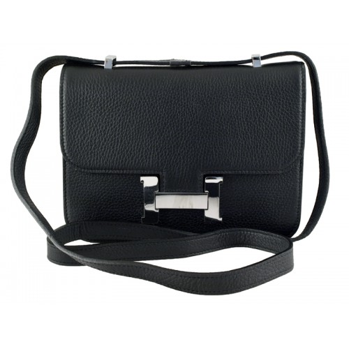 Hermes Constance 23 Jednotlivá Taška Přes Rameno Togo Kůže Černá