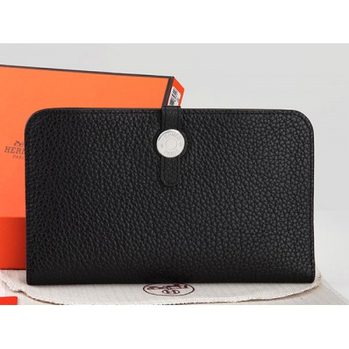 Hermes Dogon Togo Originální kožená kombinovaná peněženka černá