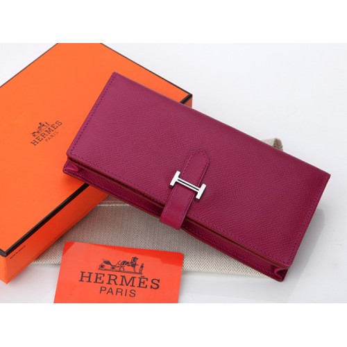 Hermes Epsom Originální Telecí Kůže Bearn Japonaise Bi-Fold Fialová Červená