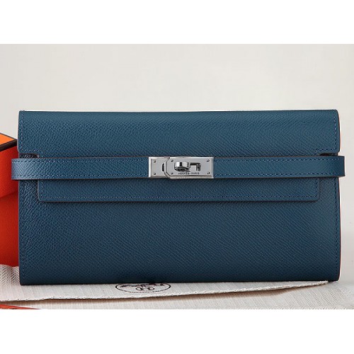 Hermes Epsom Originální Telecí Kůže Kelly Dlouhá Peněženka Tmavě Modrá
