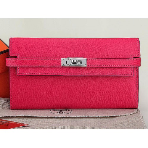Hermes Epsom Originální Telecí Kůže Kelly Dlouhá Peněženka Růžová
