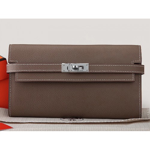Hermes Epsom Original Calfskin Kelly Long Wallet Khaki