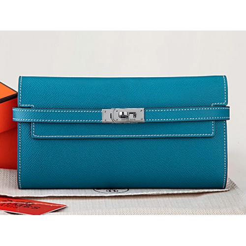 Hermes Epsom Original Calfskin Kelly Long Wallet Medium Blue