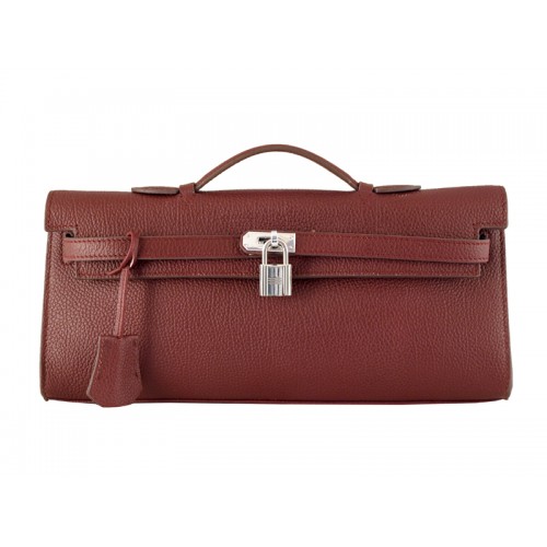 Hermes Kelly Pochette Longue Purpurově červená