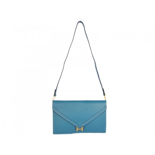 Hermes Pilot Envelope Clutch modrá se zlatým hardwarem