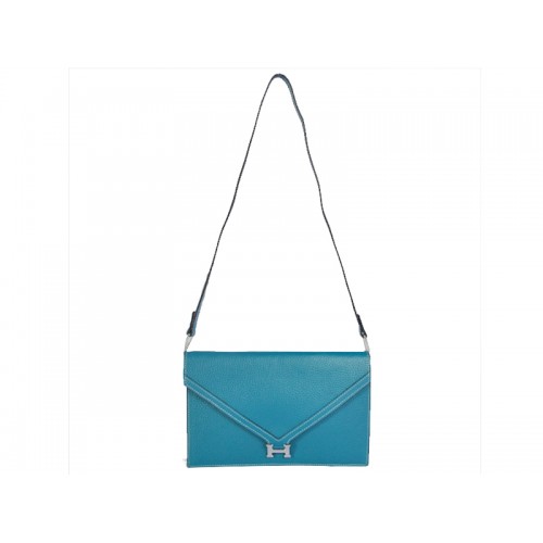 Hermes Pilot Envelope Clutch modrá se stříbrným hardwarem
