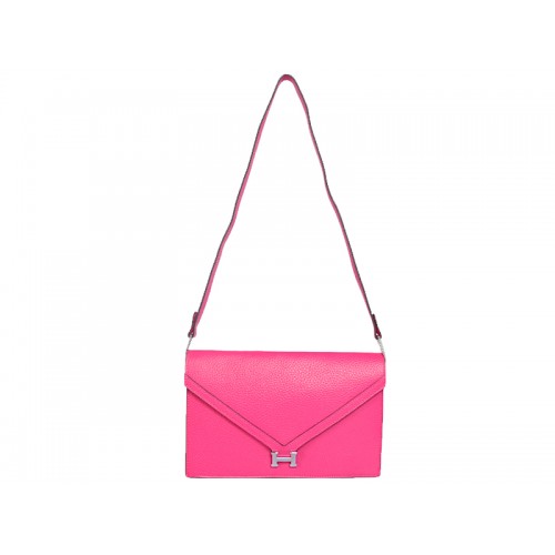 Hermes Pilot Envelope Clutch Sytě Růžová Se Stříbrným Hardwarem