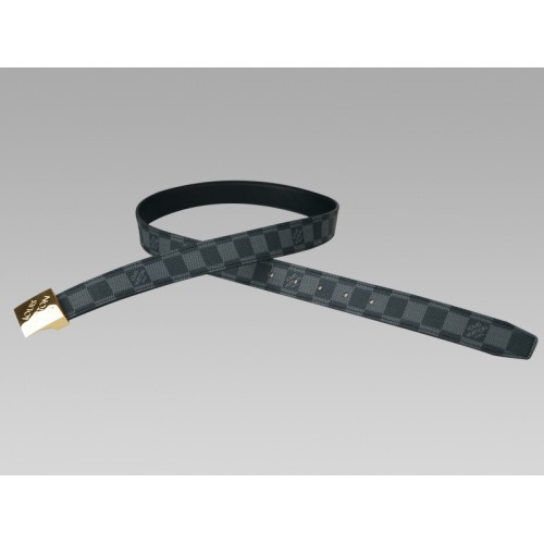 Řezaný grafitový opasek Damier se zlatou přezkou a šikmým podpisem Louis Vuitton