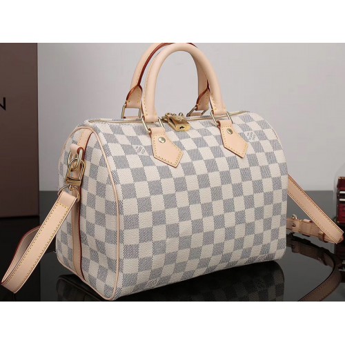 Nesnadně stylový, ať už nesený přes tělo, na rameni nebo ručně, Speedy Bandoulière 25 je ztělesněním nadčasového designu. Čerstvé, pružné plátno Damier Azur dodává na své přitažlivosti.