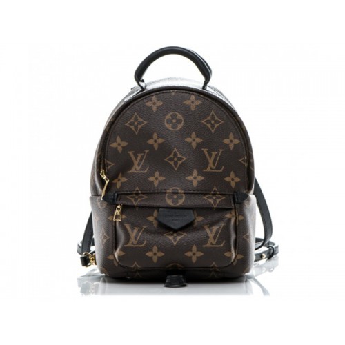 LOUIS VUITTON Monogram Palm Springs Backpack Mini nebo 100% vašich peněz zpět. Tento drobný batoh má tělo z pevného plátna potaženého monogramem s černým lemem z teletiny a přední kapsou na zip. Batoh je vyztužen silnou kůží z hovězí kůže včetně horní rukojeti a nastavitelných kožených odnímatelných ramenních popruhů.  Horní zip se otevírá do  černé nylonové tkaniny s kapsou na nášivku. Jedná se o všestranný batoh s nadčasovou přitažlivostí, ideální pro každodenní nezbytnosti, od Louis Vuitton!