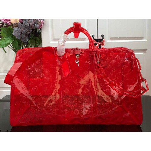 Louis Vuitton Monogram Embossed Pvc Keepall Bandouliere 50 Červená m53274