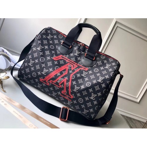 Tento model Speedy 40 má výrazné obrácené logo LV navržené Kim Jonesem pro předkolekci podzim-zima 2018. Tmavě monogram Inkoustem potažené plátno je přerušováno kontrastním růžovo-kovovým hardwarem. Se svým textilním popruhem a horní rukojetí lze tuto stylovou tašku Speedy nasunout přes rameno nebo ji nosit ručně.
