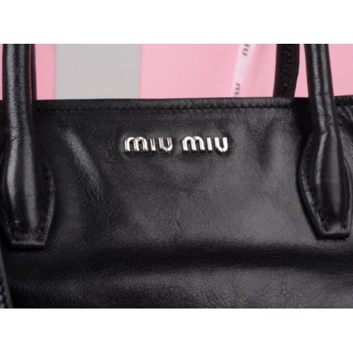 Kožená kabelka Miu Miu Glazed Tote černá