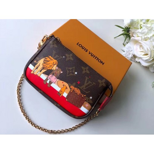 Na oslavu zimních prázdnin vytváří Louis Vuitton limitovanou edici doplňků Mini Pochette z plátna Monogram, překrytou potiskem lvů hrajících si s ikonickými kmeny House. Hravý a kompaktní, tento sáček funguje jako sáček v sáčku nebo malém ručním sáčku.