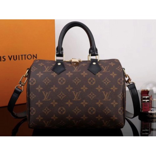 Louis Vuitton Monogram Canvas Speedy Bandouliere 25 s černým koženým lemováním