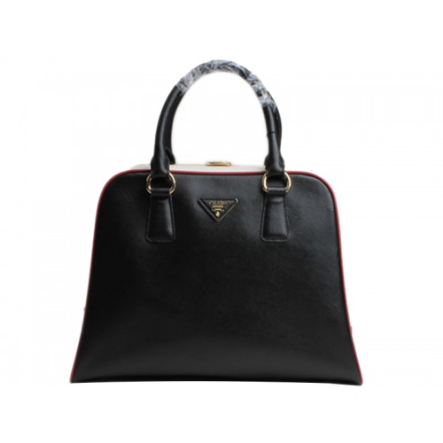 Prada Saffiano kabelka s horním uchem a rámem, černá