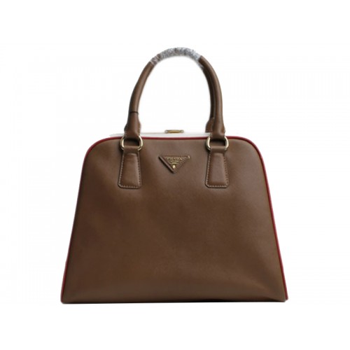 Prada Saffiano taška s rámem s horním uchem, kávová