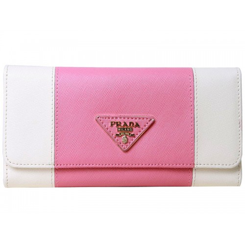 Kožená peněženka Prada Saffiano Tri-Fold bílá s růžovou
