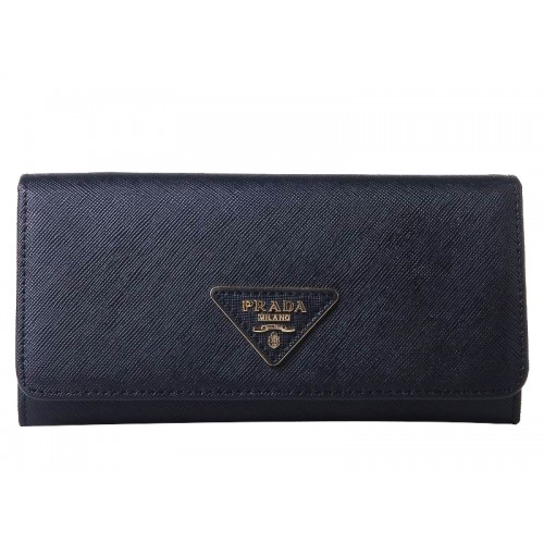 Kožená peněženka Prada Saffiano s trojúhelníkovým logem, černá