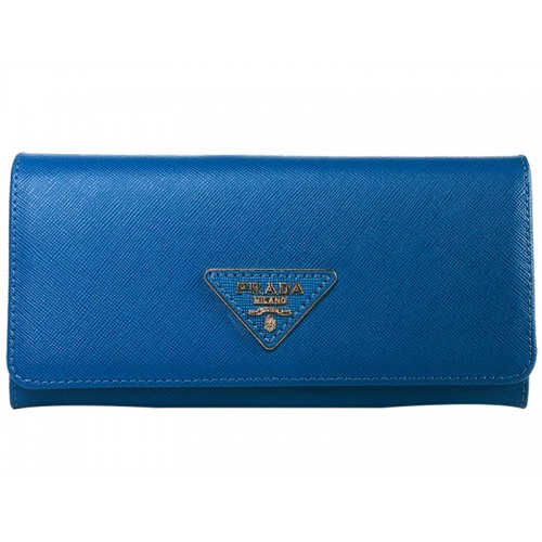 Kožená peněženka Prada Saffiano s trojúhelníkovým logem, modrá