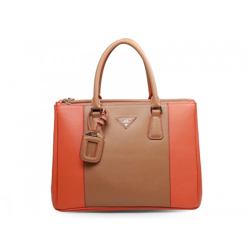 Prada Saffiano Lux Tote hnědá s oranžovou