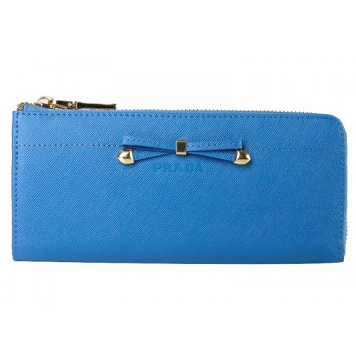 Peněženka Prada Saffiano na zip s mašlí modrá
