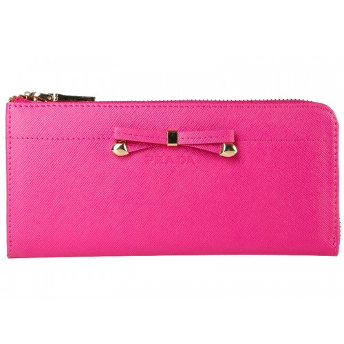 Peněženka Prada Saffiano na zip s mašlí v zářivě růžové barvě