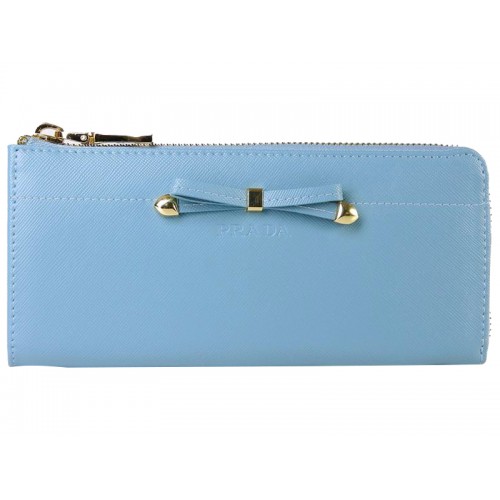 Peněženka Prada Saffiano na zip s mašlí světle modrá