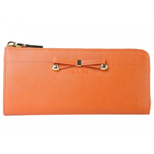 Peněženka Prada Saffiano na zip s mašlí oranžová