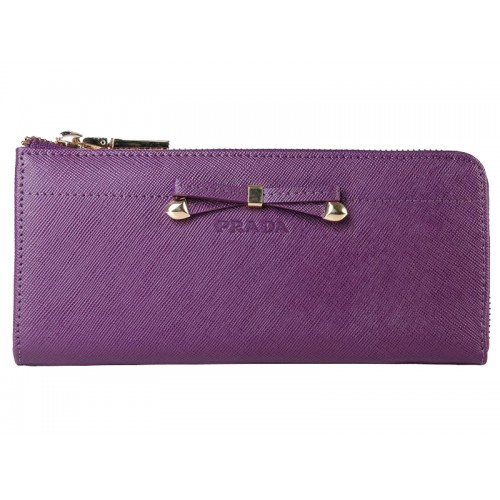Prada Saffiano peněženka na zip s mašlí fialová
