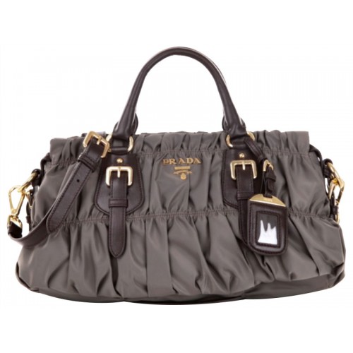 Prada Tessuto Gaufre Nylonová kabelka s horním uchem tmavě šedá