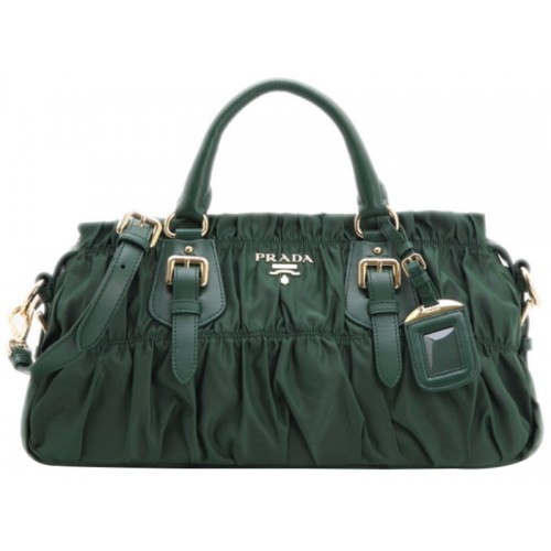 Prada Tessuto Gaufre Nylonová kabelka s horním uchem zelená