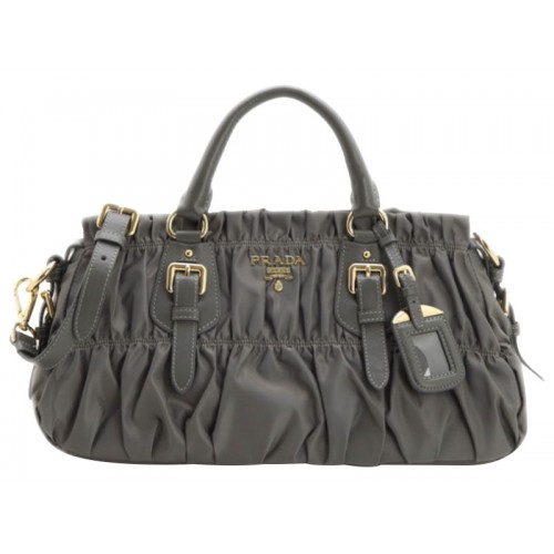 Prada Tessuto Gaufre Nylonová kabelka s horním uchem šedá