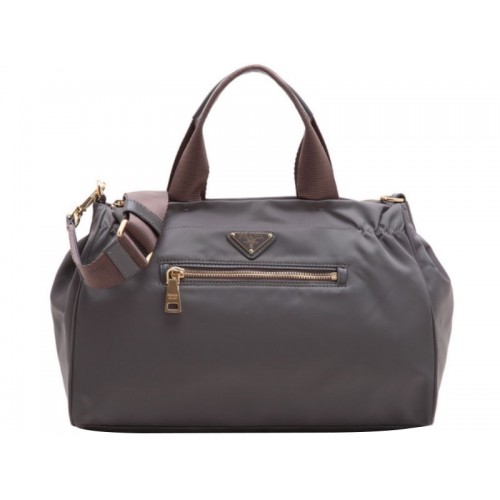 Prada Tessuto Nylon s koženým lemováním Bauletto Taška přes rameno šedá