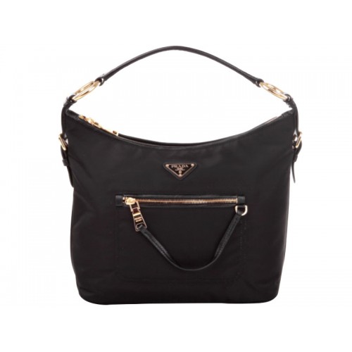 Prada Tessuto Nylonová Kabelka Hobo s Koženým Ozdobením Černá