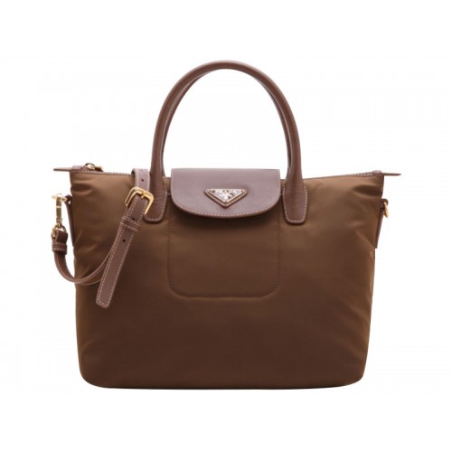 Prada Tessuto Nylonová Taška s Koženým Obložením Hnědá