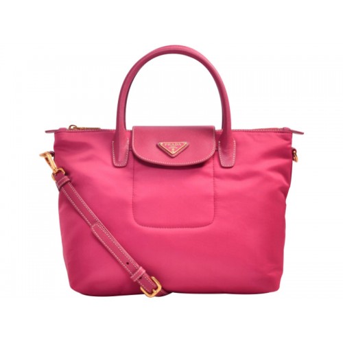 Prada Tessuto Nylonová Kabelka S Koženým Okrajem Růžová