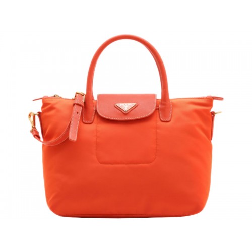 Prada Tessuto Nylonová Taška s Koženým Obložením Oranžová