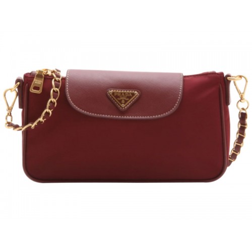 Prada Tessuto Nylon Se Saffiano Koženou Kabelkou Na Zápěstí Burgundsko