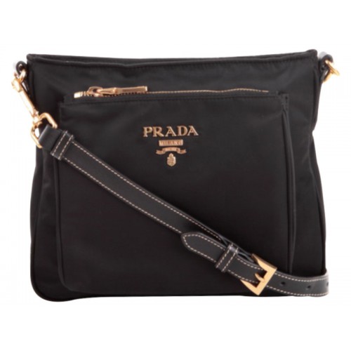 Prada Tessuto Saffian Nylon s koženou crossbody taškou přes rameno černá