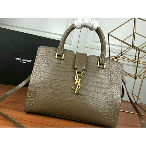 Saint Laurent Cabas Ysl Small v hladké kůži šedé barvy