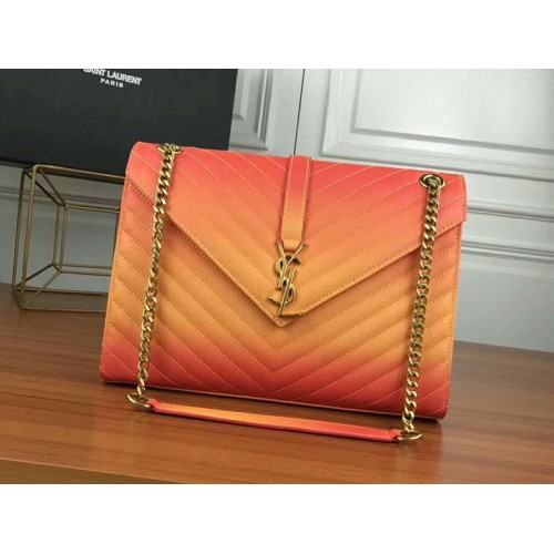 Saint Laurent Ysl Monogram Satchel v oranžové kůži Matelasse