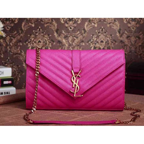 Rtěnka YSL Medium Monogram Satchel Lipstick Fuchsia Grain Poudre Textured Matelasse Leather