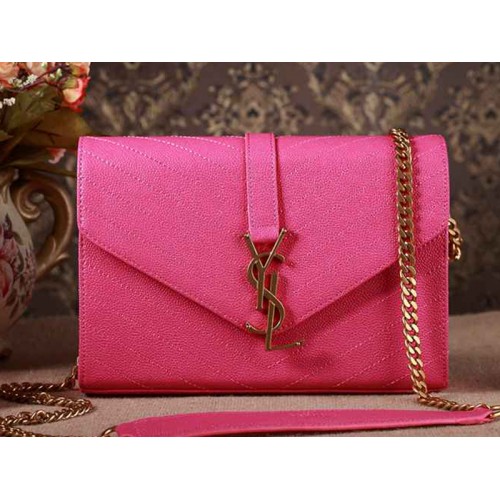 Rtěnka YSL Small Monogram Satchel s fuchsiovou texturou Matelasse z kůže