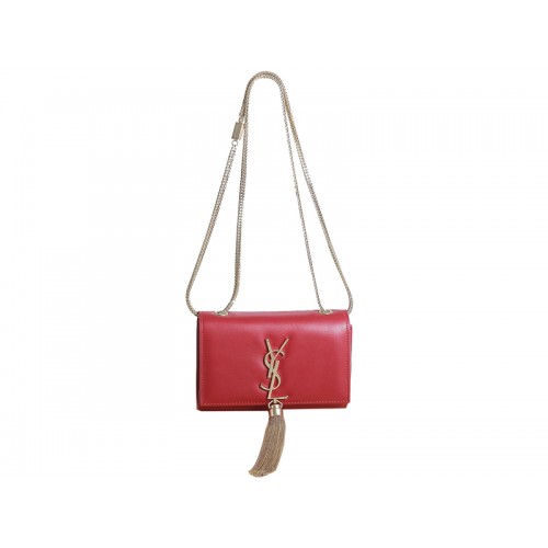 Mini kabelka s monogramem Yves Saint Lauren z originální kůže, červená